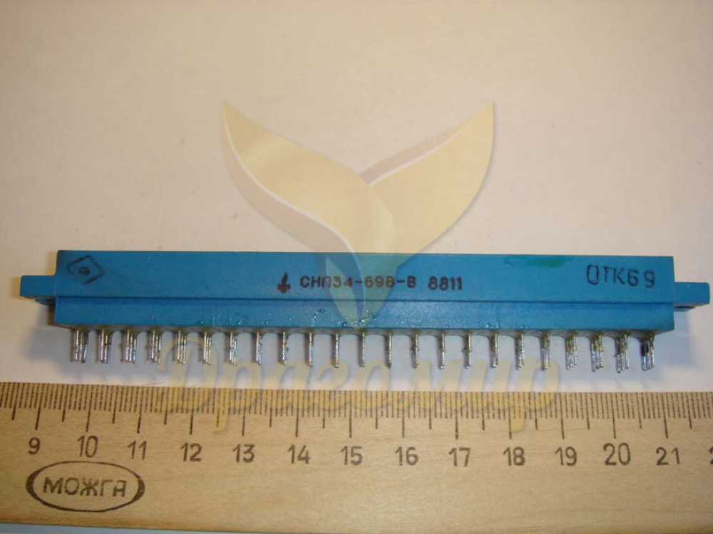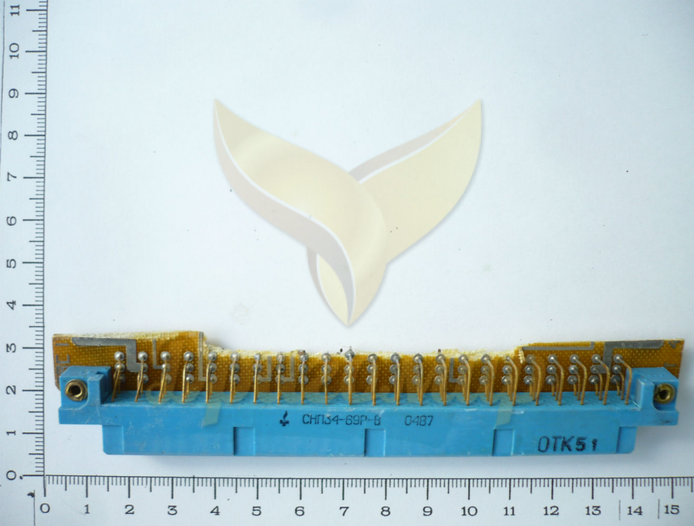 Соединитель прямоугольный ножевой печатного монтажа СНП 34-113 выпускался во времена СССР, имеет полимерный корпус с трехрядным расположением ламелей. Относится к числу самых дорогих благодаря золотой позолоте контактной группы. Состоит из розетки, монтируемой на плате, и ответной вилки. Каждый контакт выдерживает напряжение до 250 В и токовую нагрузку до 3 А.